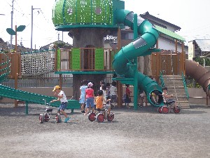 スク-タ-に乗ったり、ブランコに乗ったり・・・