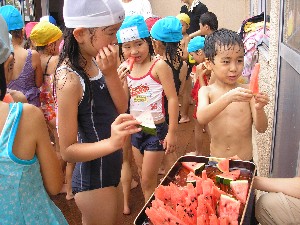 ちょっぴり日焼けした顔で24日(木)久しぶりに幼稚園に遊びに来てくれました。