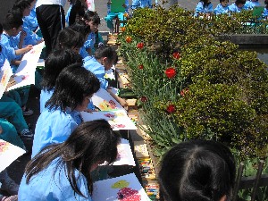 年長さんは、チュ-リップの観察・・・