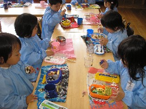 今日からみ~んなお昼をを食べて お・か・え・り