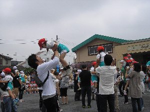 ボ-ルをかごにいれて・・・頭上注意!!