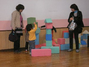 大きな積木も重ねて