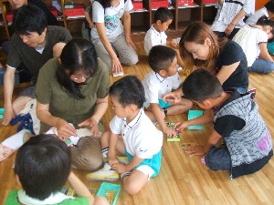予定通り園庭で開催できなくて残念でしたが、お家の方とたのしいひとときを