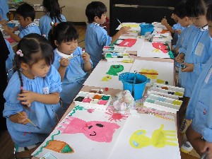 年長組は水彩画