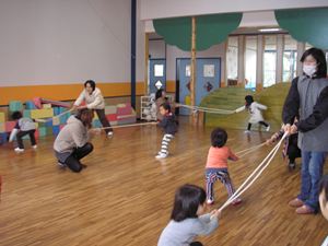 縄跳びで引っ張りっこ