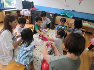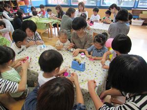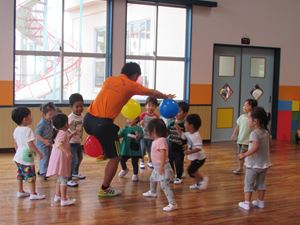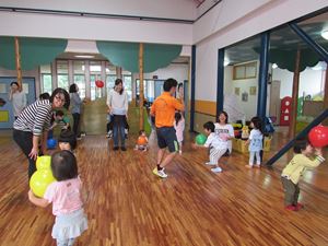 9日(水) 子育て支援教室のたんぽぽキッズで体操のお兄さんと遊んだり