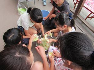 キャベツをちぎって
