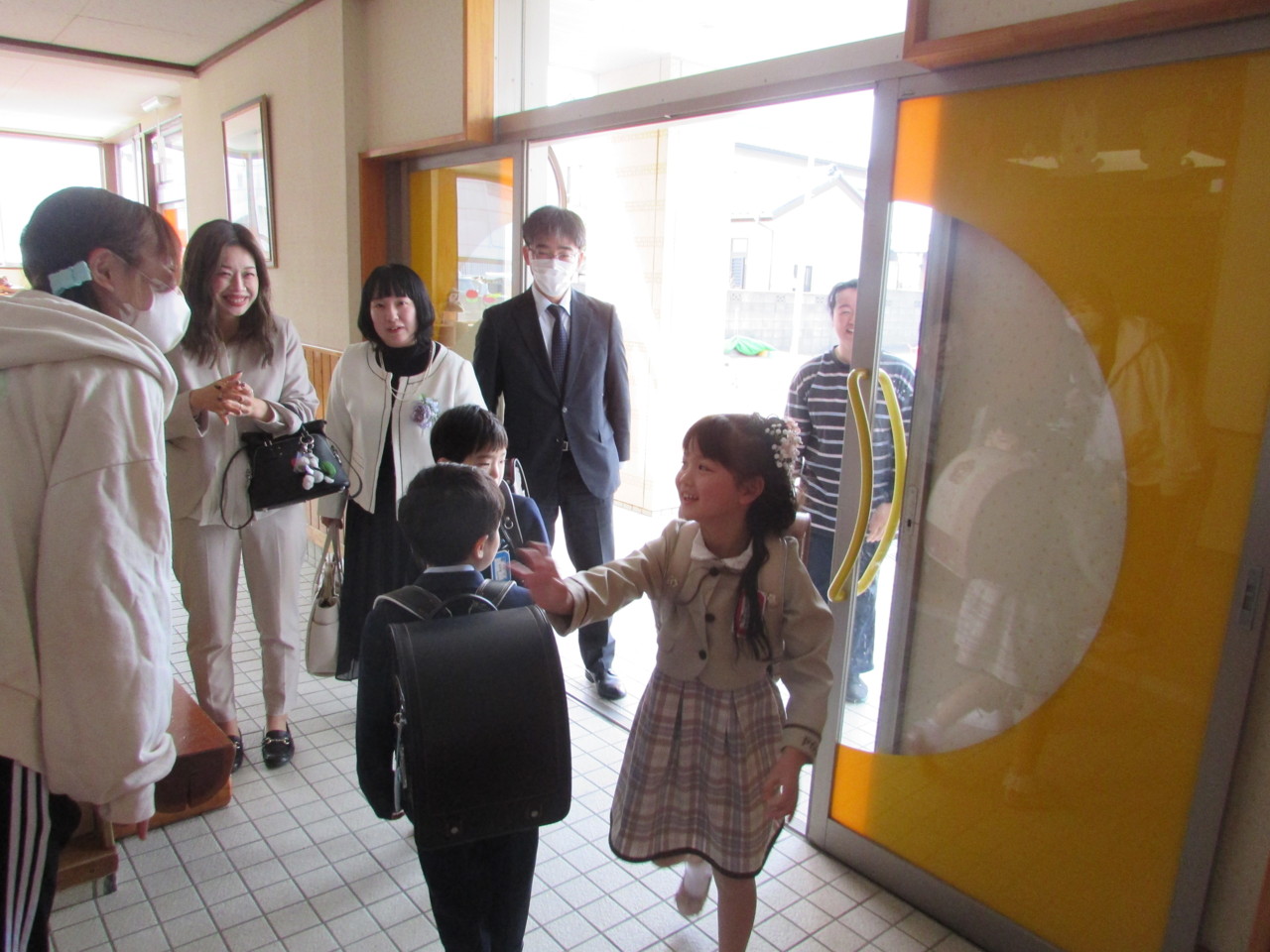 9日(木)卒園生が小学校の入学式後、ランドセル姿を見せに来てくれました
