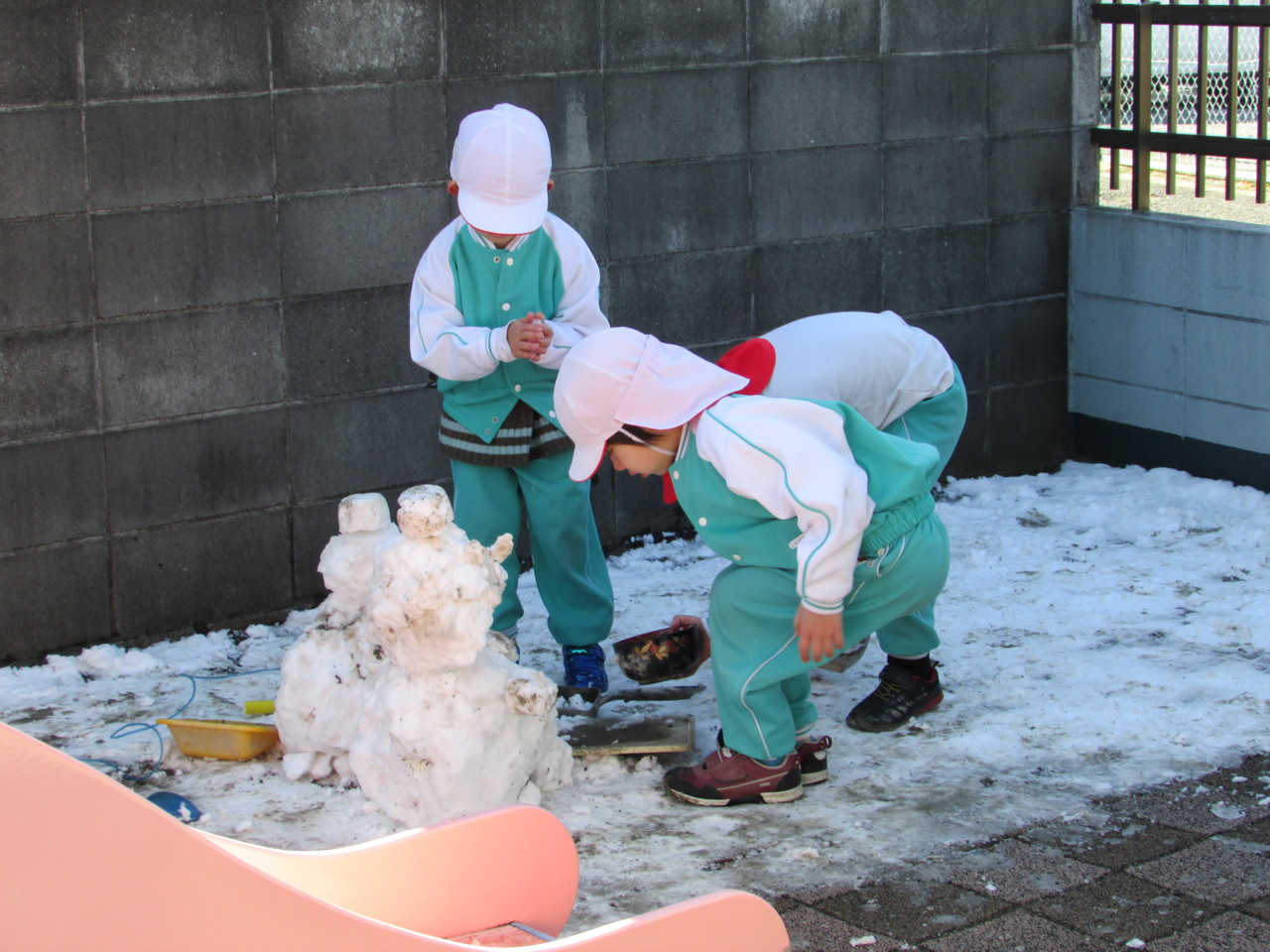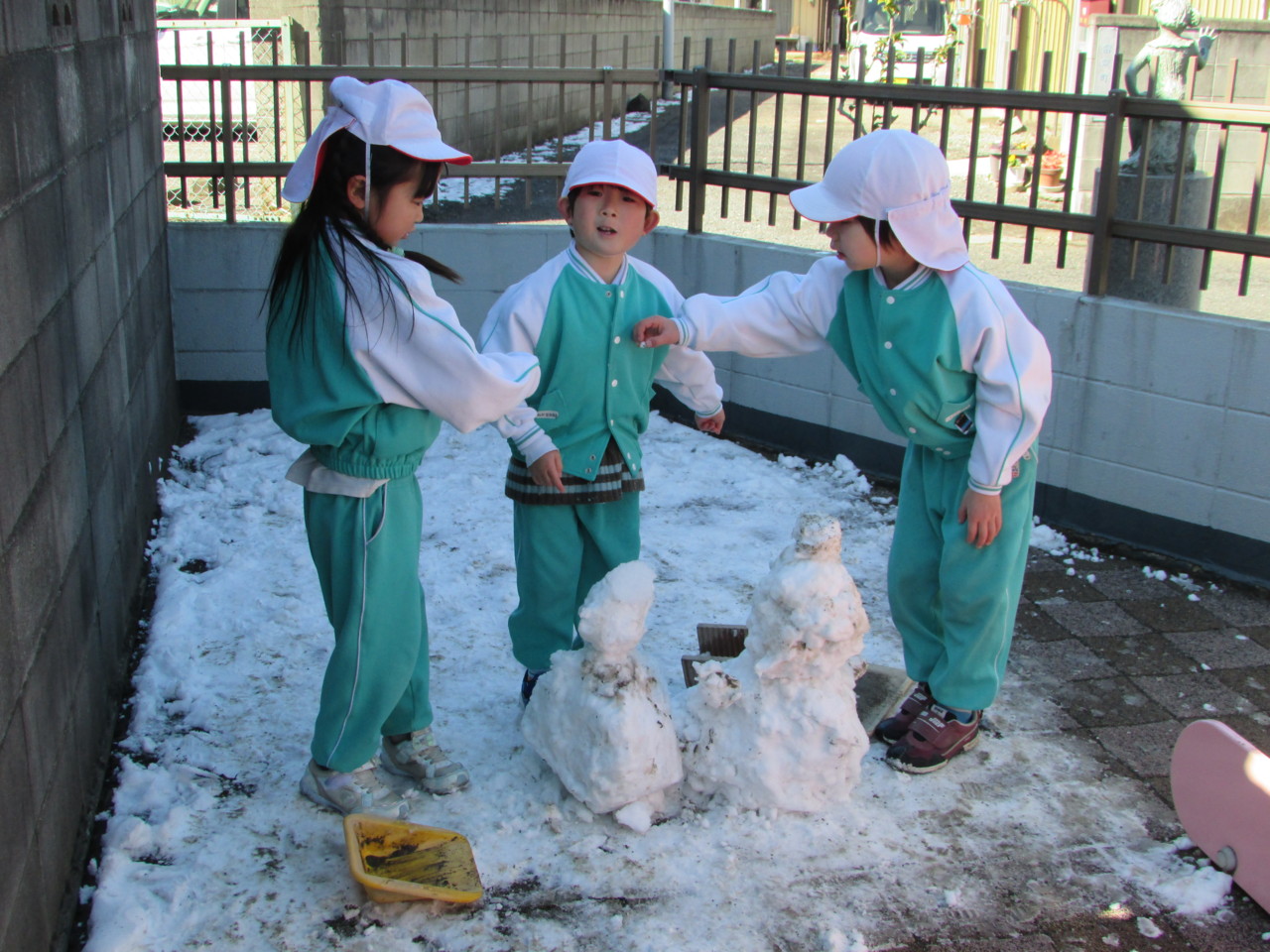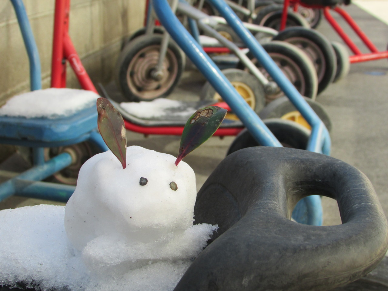 土~日曜日(7~8日)に降った雪が園庭に残っていました