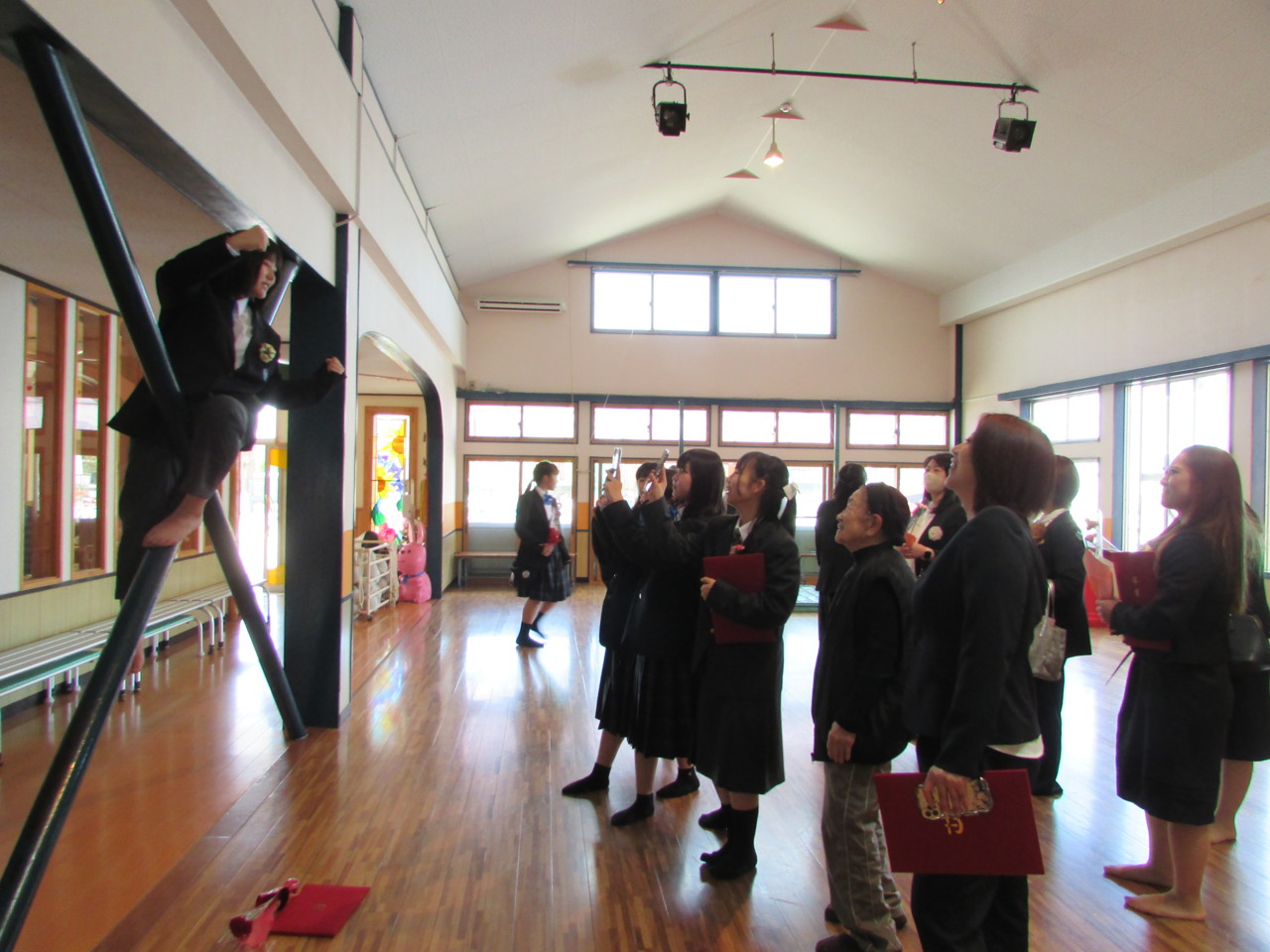 19日(木)小学校の卒業式があり、卒園生が晴れ姿を見せに来てくれました