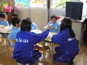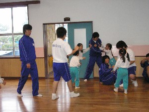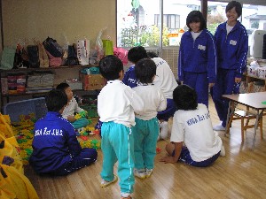 家庭科の授業(ふれあい学習)で幼稚園に来てくれました。