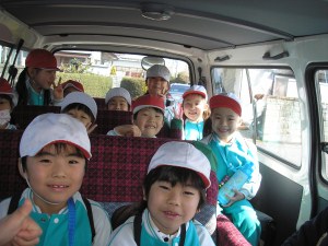 歩きで通園しているお友だちは これ(バス)が楽しみ