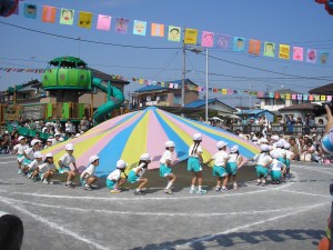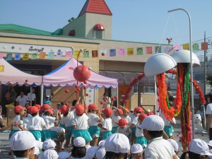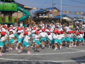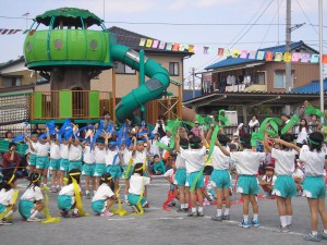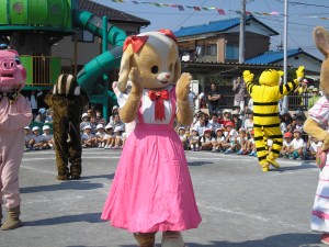 ぬいぐるみの行進 暑い中、年長組のお父さんお母さんに着ぐるみを着て踊っていただきました。 お疲れ様でした・・・
