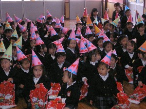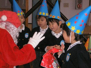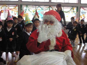 午後はお待ちかね サンタさんが幼稚園に来てくれました。