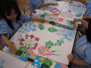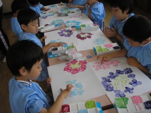 年長組は フィンガーペイントで観察画