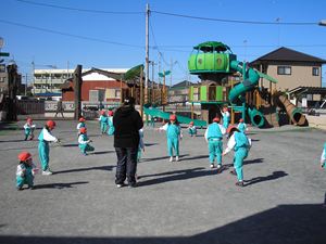 風が強く寒い日でしたが、子どもたちは元気いっぱい・・・