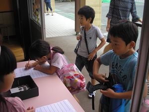 受付で上手に名前を書いて