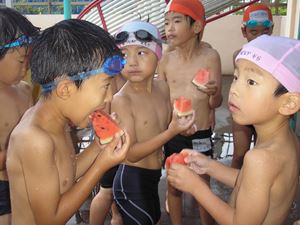 水着で食べるスイカは 格別