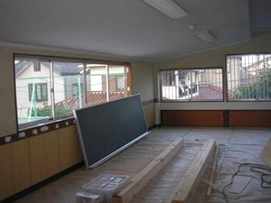 夏休み中 2階トイレ・保育室の改修工事をやっています。