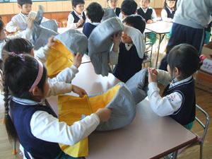 夕涼み会・バザ-の売上金で防災ずきんを新調させていただきました。