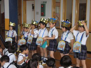 5月生まれ お誕生会 と 年長組のジャガ芋の生長