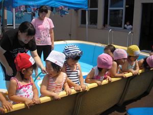 子どもたちが楽しみにしている水遊びが残念なことに・・・
