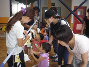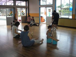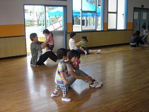 ホ-ルで少し親子体操をやって・・・