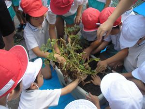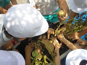 ひまわり組がジャガ芋を収穫しました