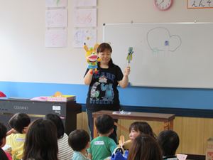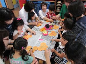 体操のお兄さんと遊んだり、幼稚園の先生と工作をやったり