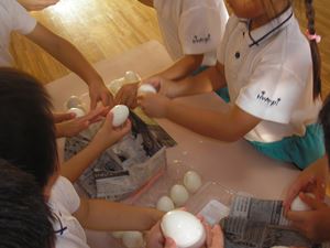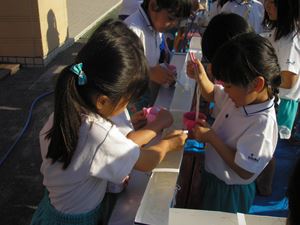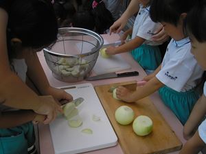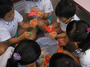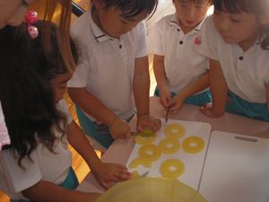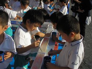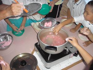 年長組の先生手作りの流しそうめん・・・おやつ?