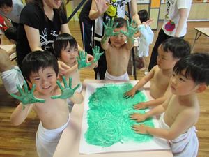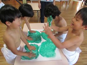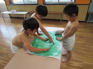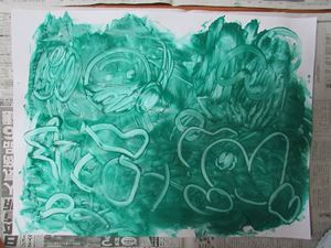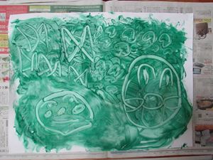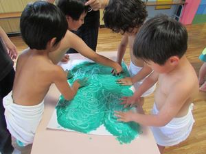 ぬるぬるの感触を楽しんでから指で絵を描いてみました