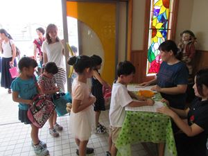 受付で自分の名前を上手に書きました