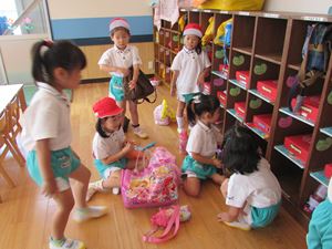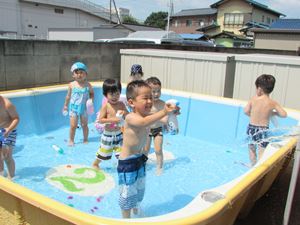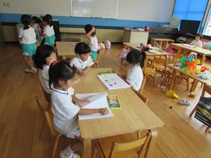 夏休み中、自由登園(希望保育)で子どもたちが登園しています。