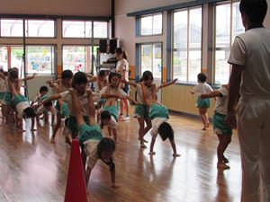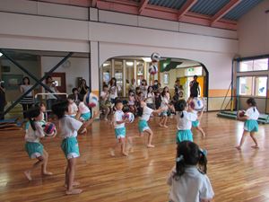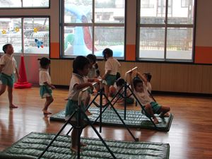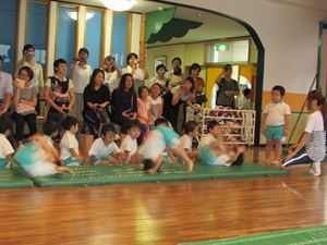 当日は台風の影響でお天気が心配でしたが、体操教室を見てもらったり