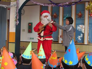 今年のサンタさんはウクレレを弾いてくれました