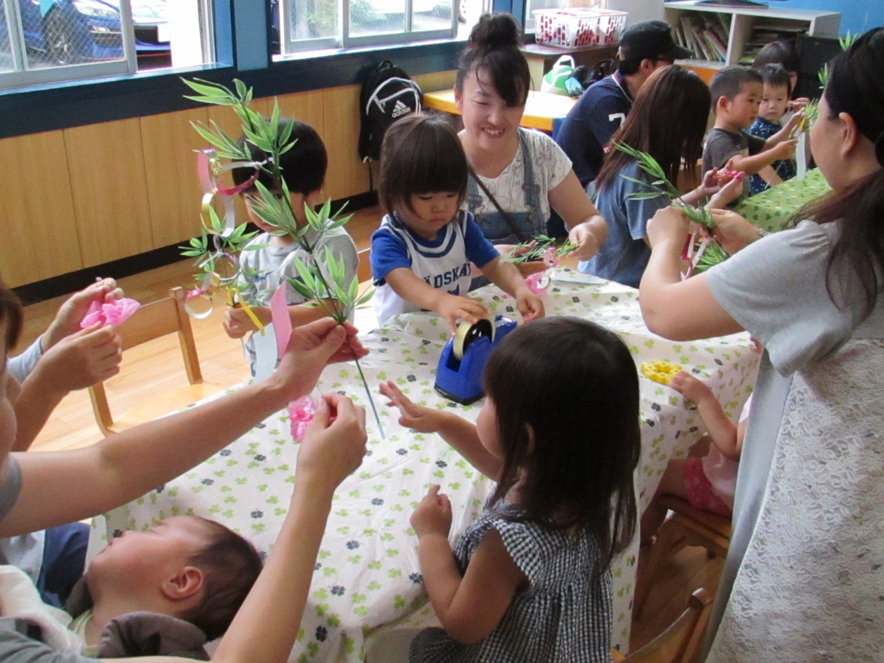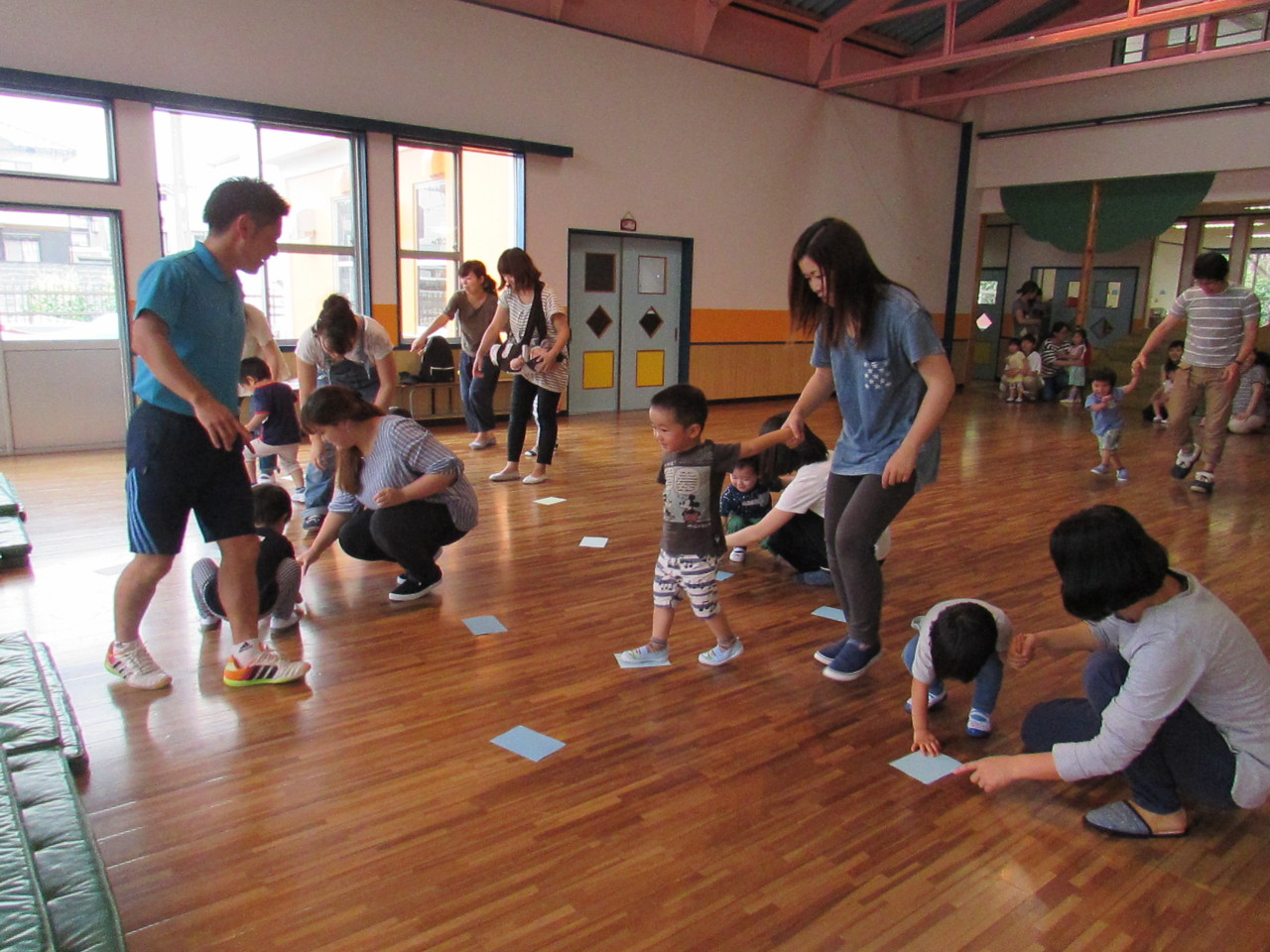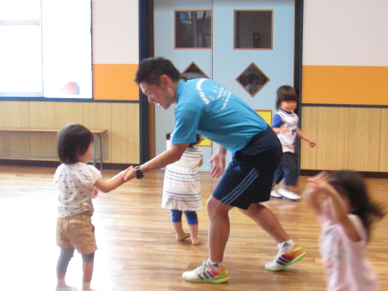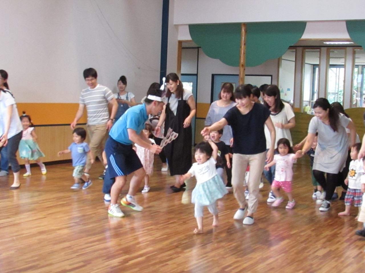 晴れたらプ-ル遊びでしたがあいにくのお天気で残念でした。でもたくさんのお友だちが遊びに来てくれました。