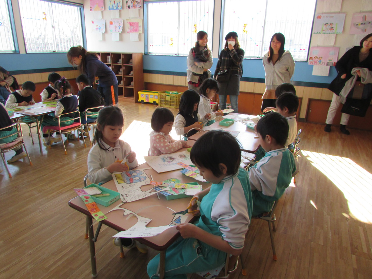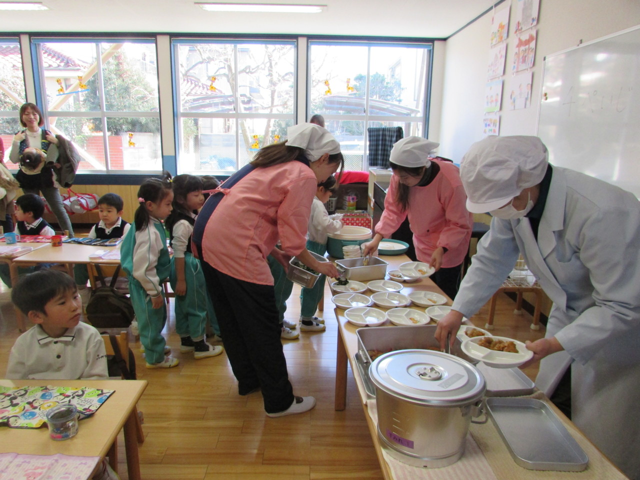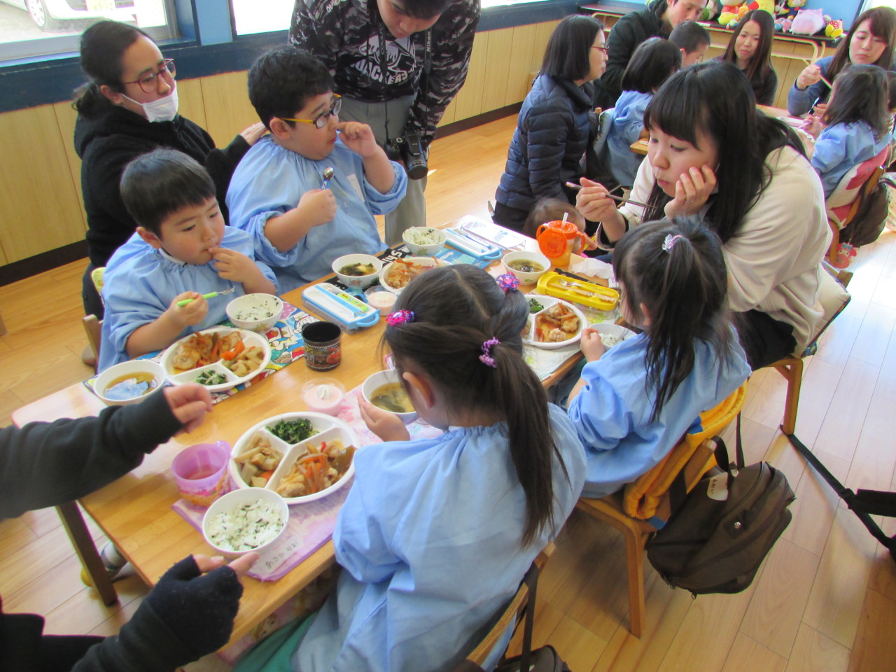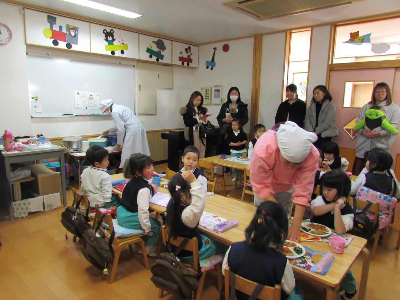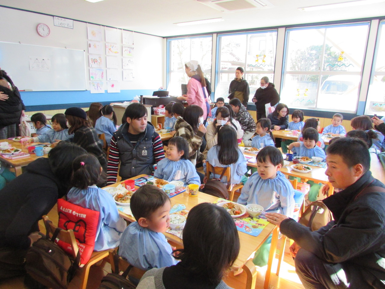 一日ご都合のつく時間に自由に参観していただき、お昼は給食の試食もしていただきました。