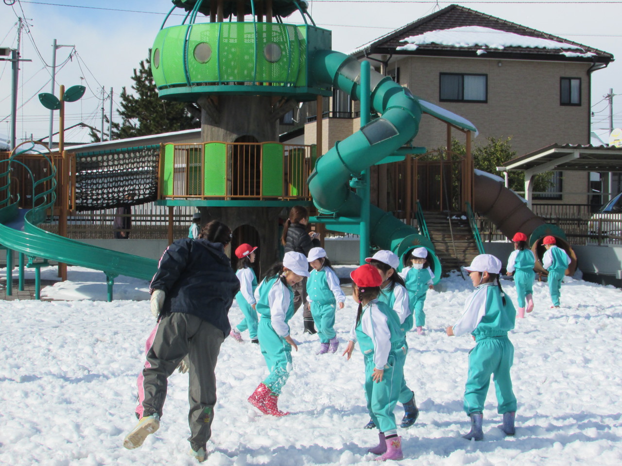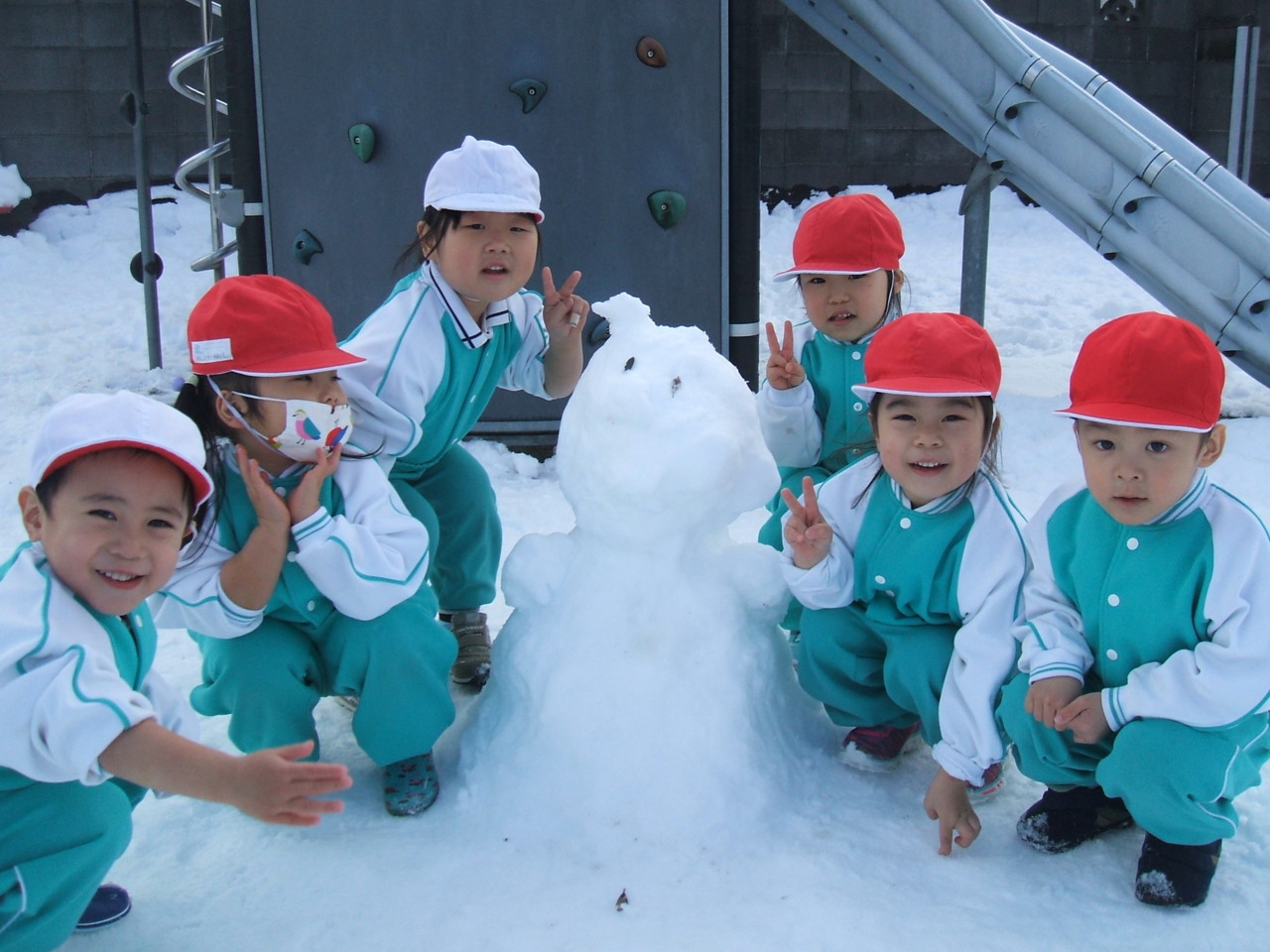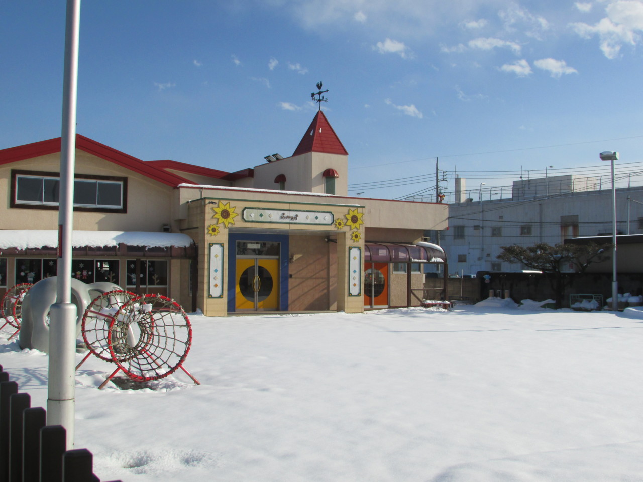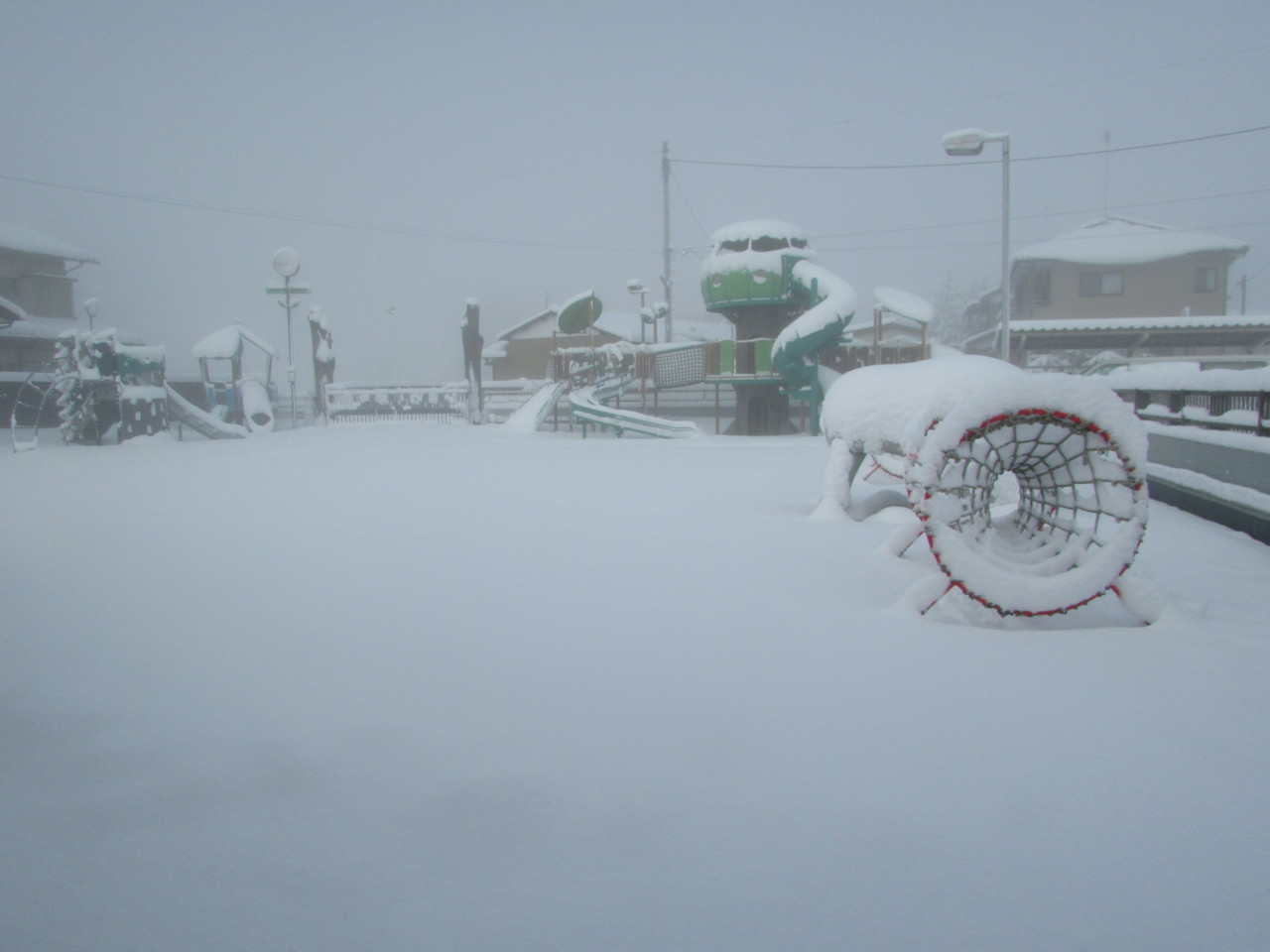 22日(月)の夜から降り出した雪で幼稚園が銀世界に変わりました