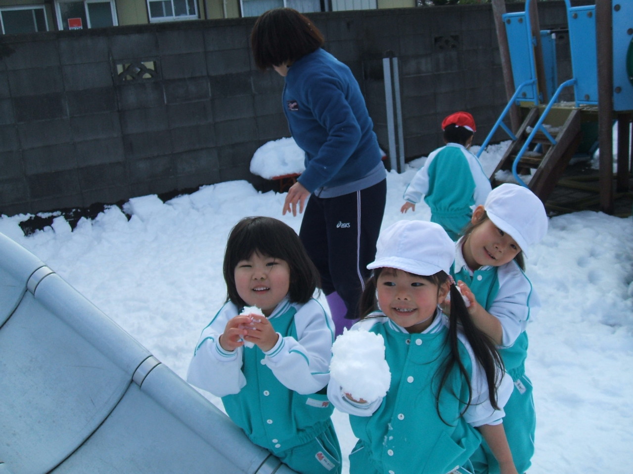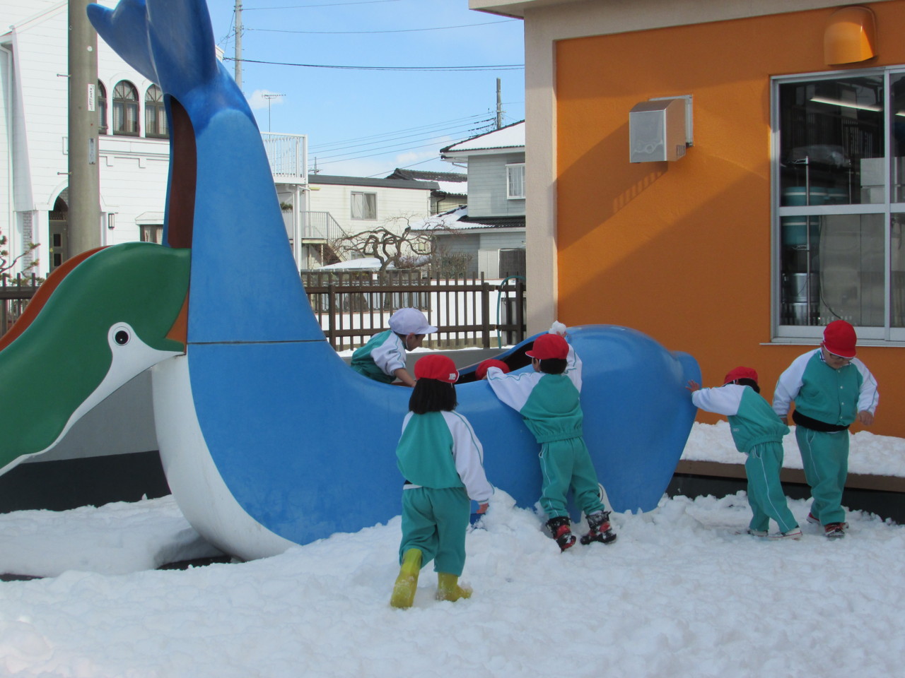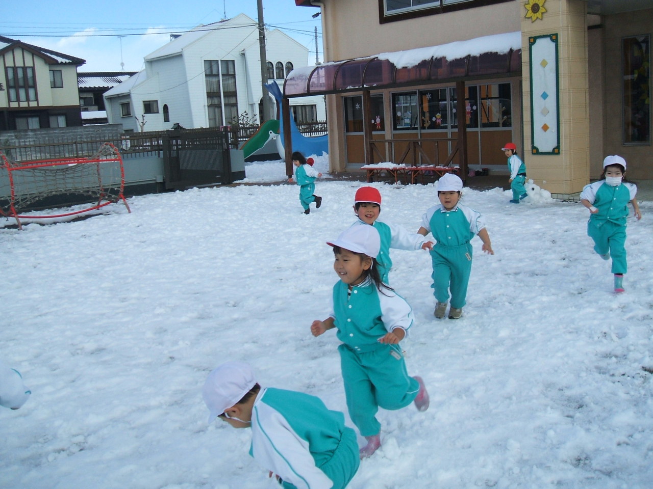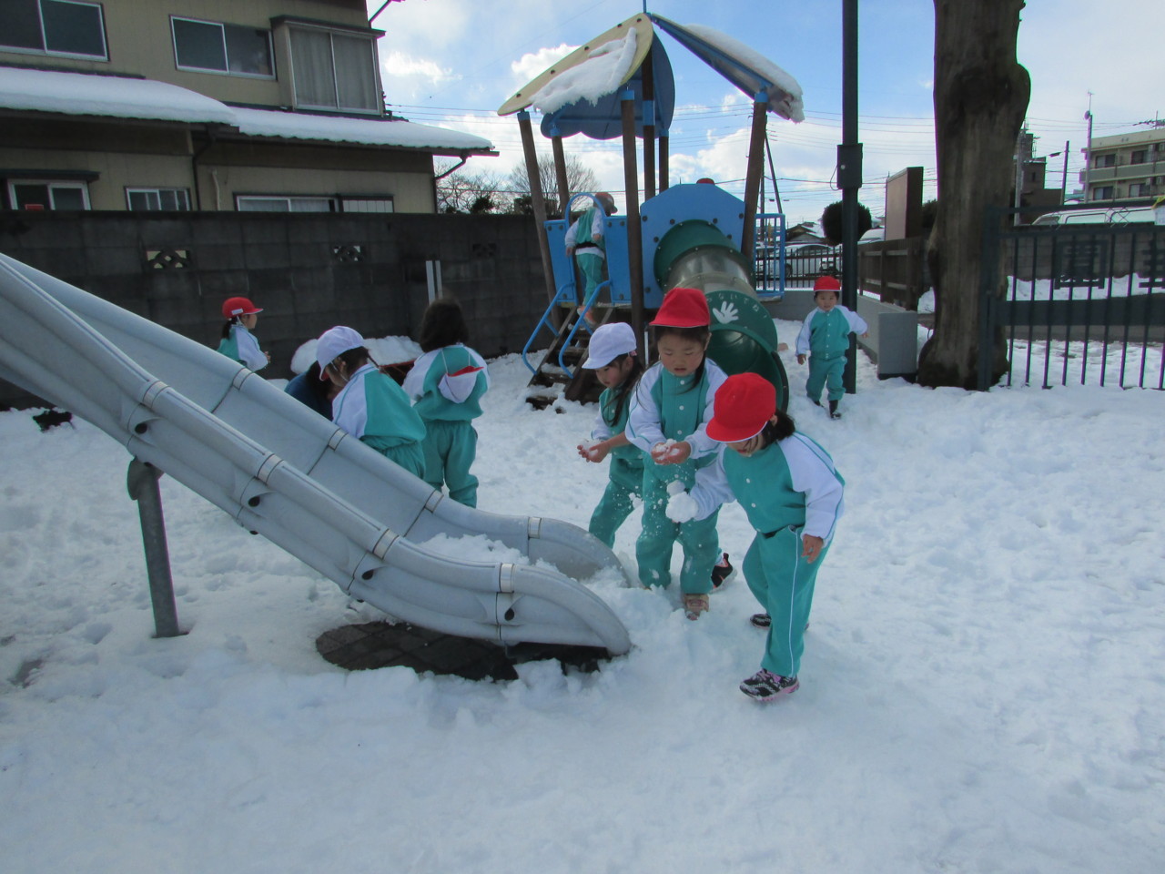22日(月)の夜から降り出した雪で幼稚園が銀世界に変わりました