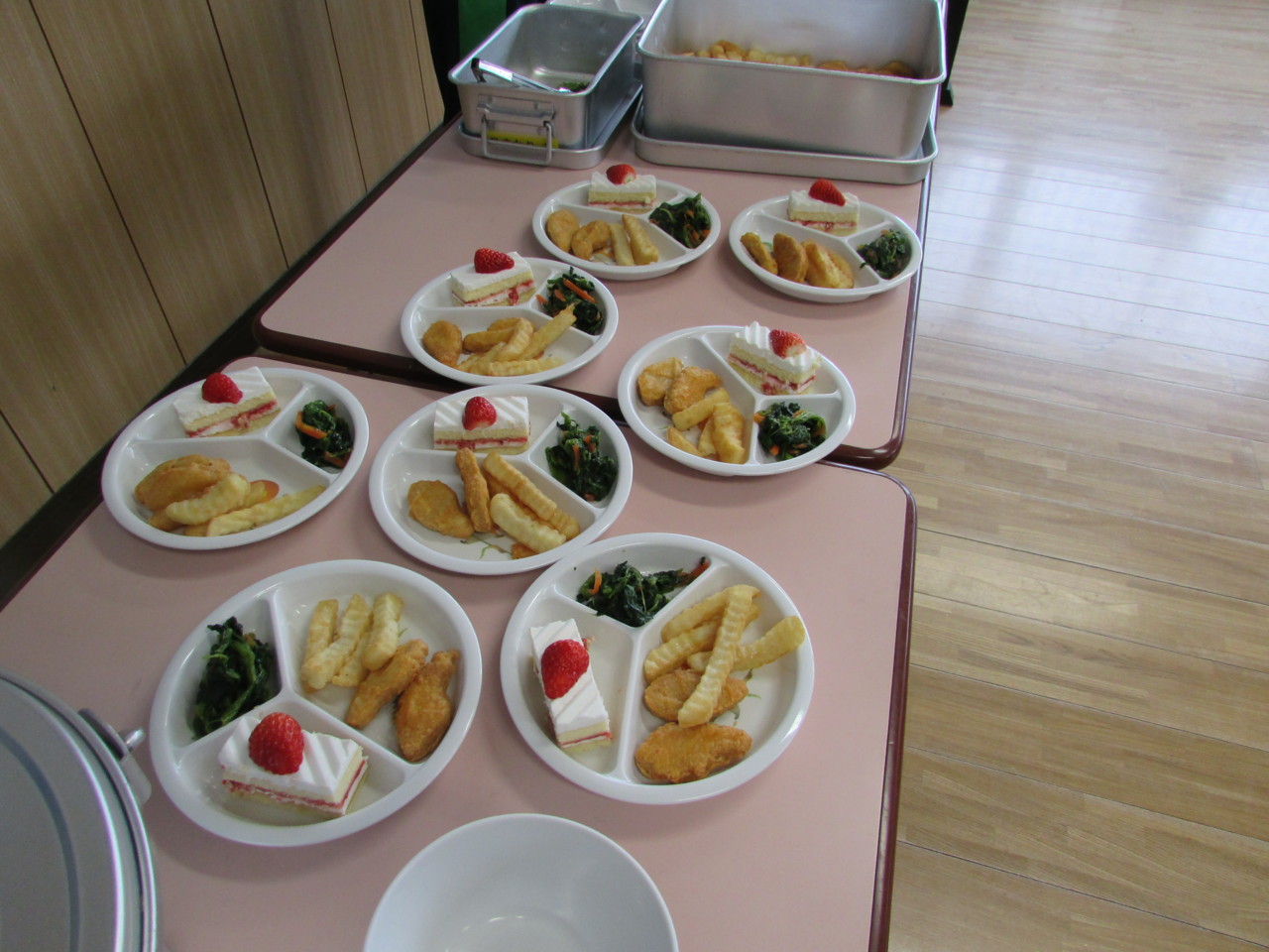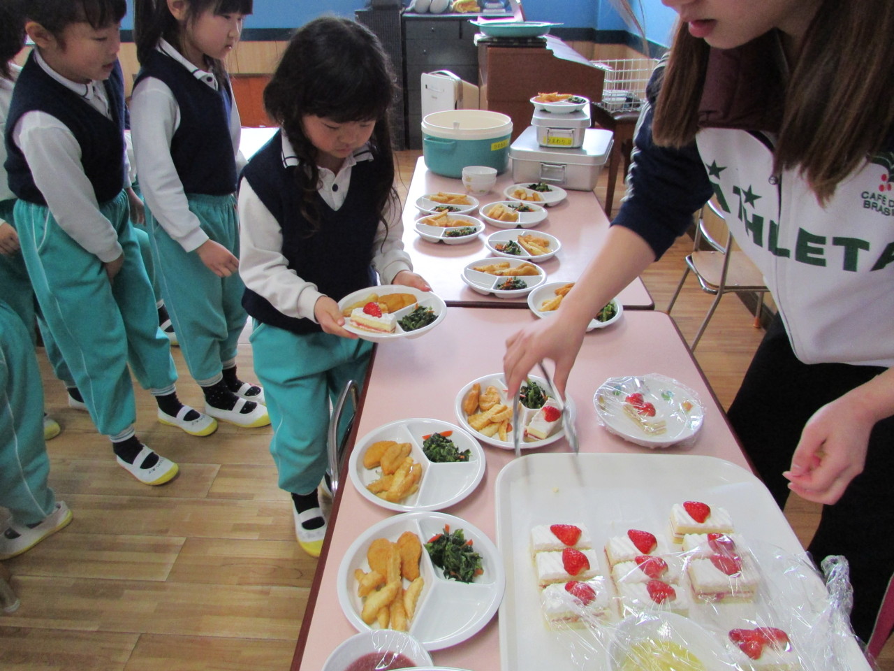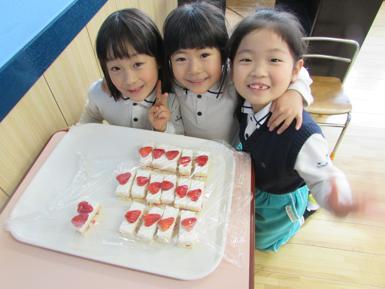 いちごのショ-トケ-キには歓声があがりました