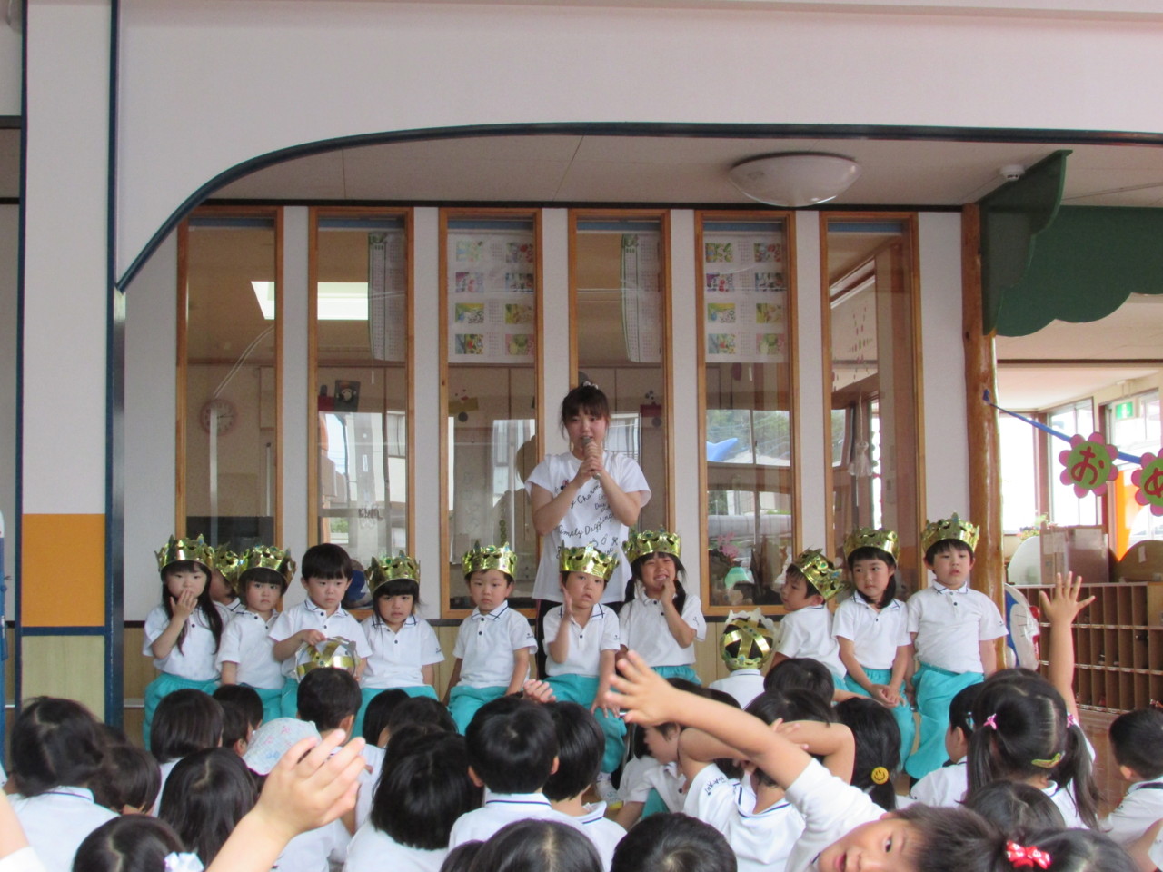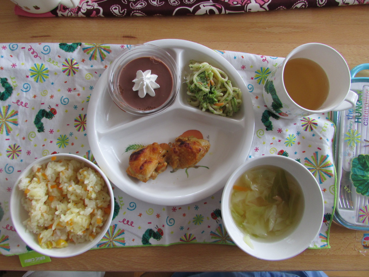 誕生会の給食はクリ-ムがのったデザ-トがおたのしみ・・・