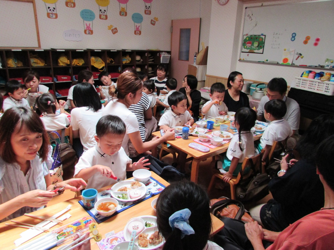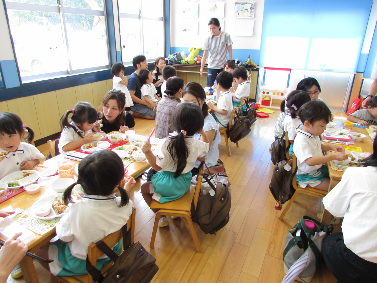 木曜日は体操教室もあり、昼食はお子さんと一緒に給食を試食して頂きました。