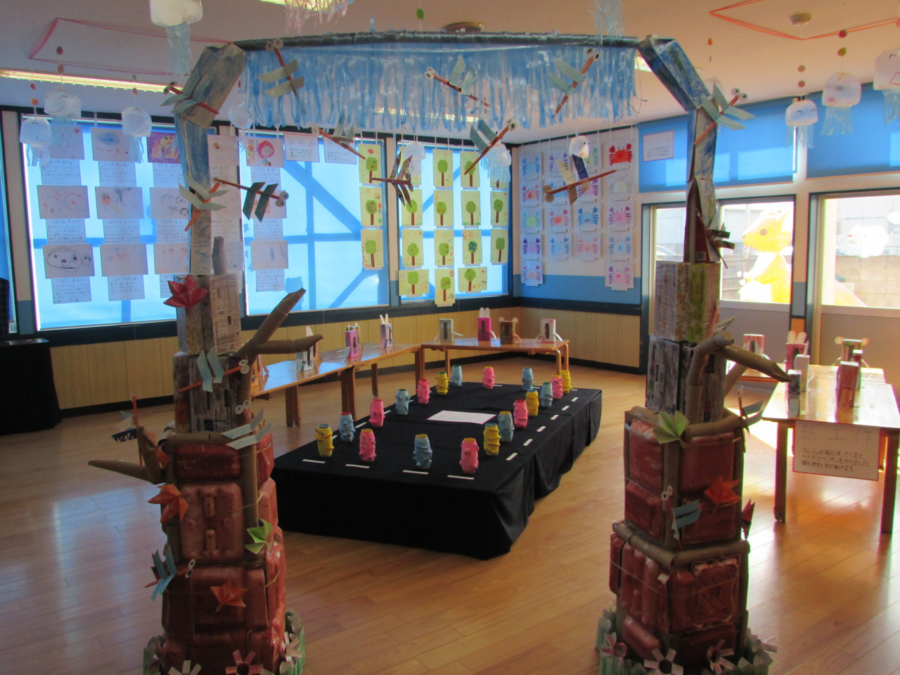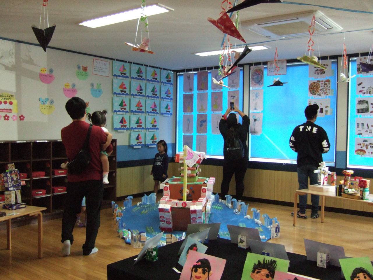 10日(土) お天気にも恵まれ、少々暑く感じるほどの穏やかな日に園児たちによる作品展が開催されました。