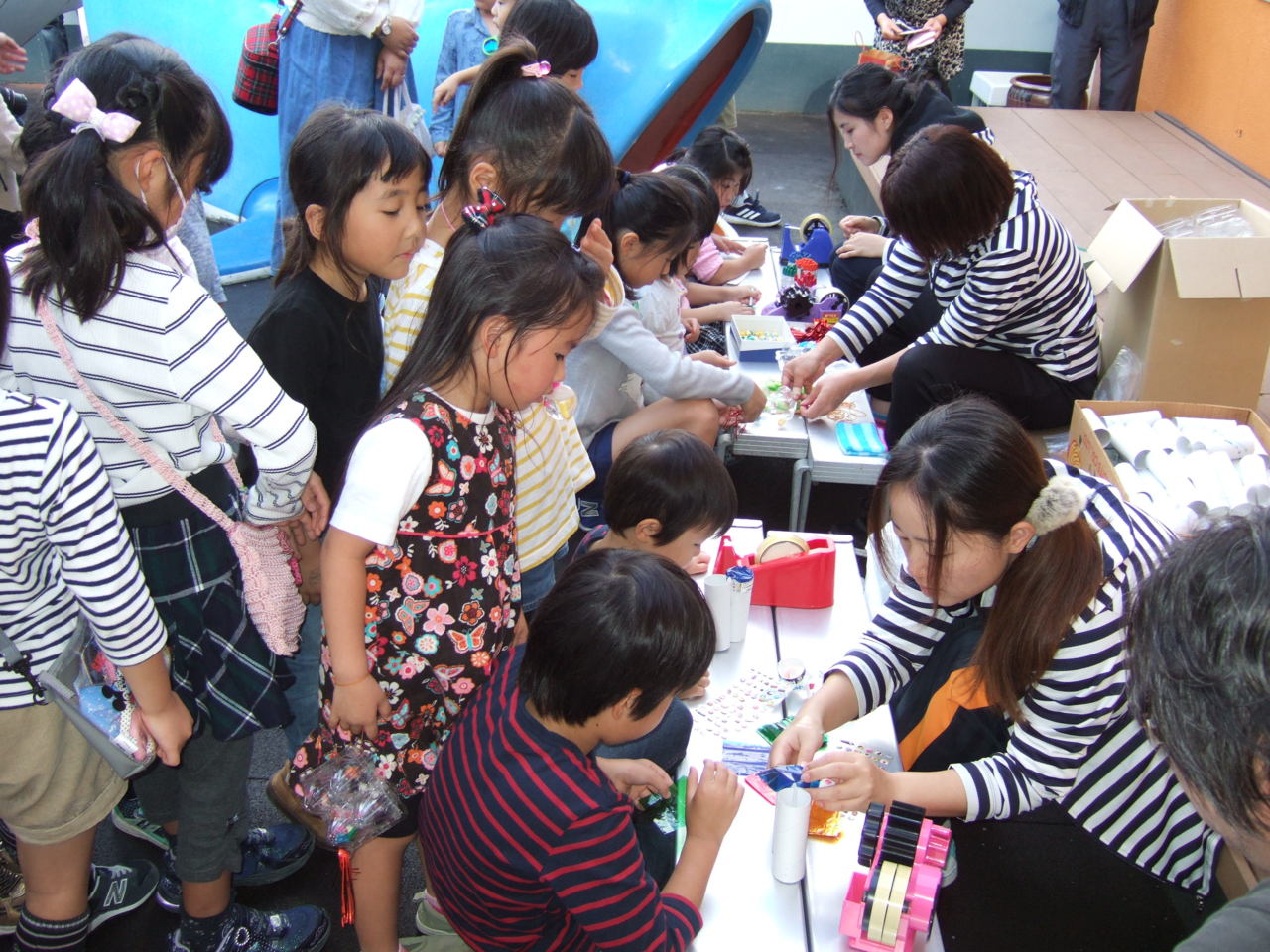 園庭とホ-ルでは保護者会によるバザ-・模擬店もにぎかに開催されました。