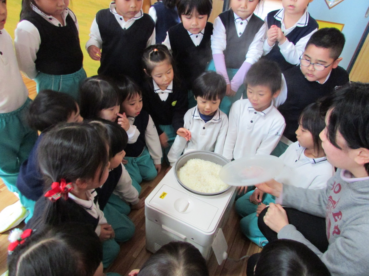 口を開けて見てる子どもたち