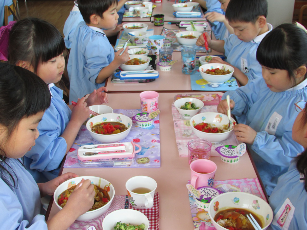 給食室の方の手書きのメッセ-ジ付ゼリ-