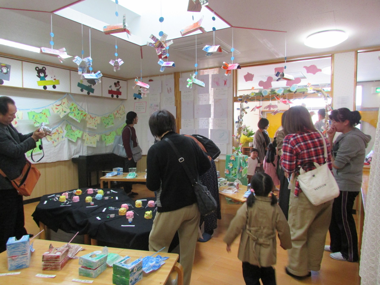 9日(土)園舎、園庭にて園児達による作品展と保護者の方によるバザ-・模擬店が開催されました。