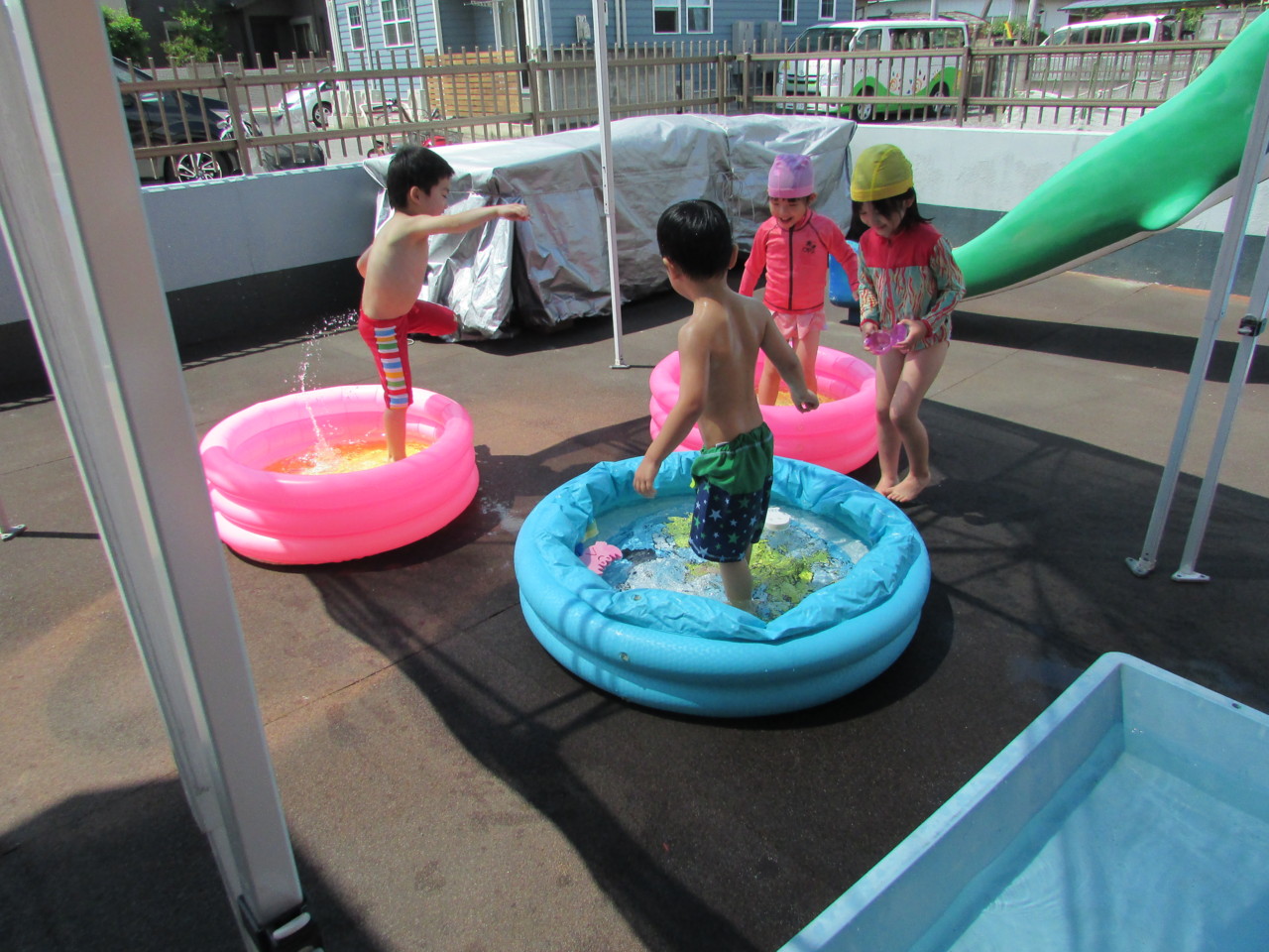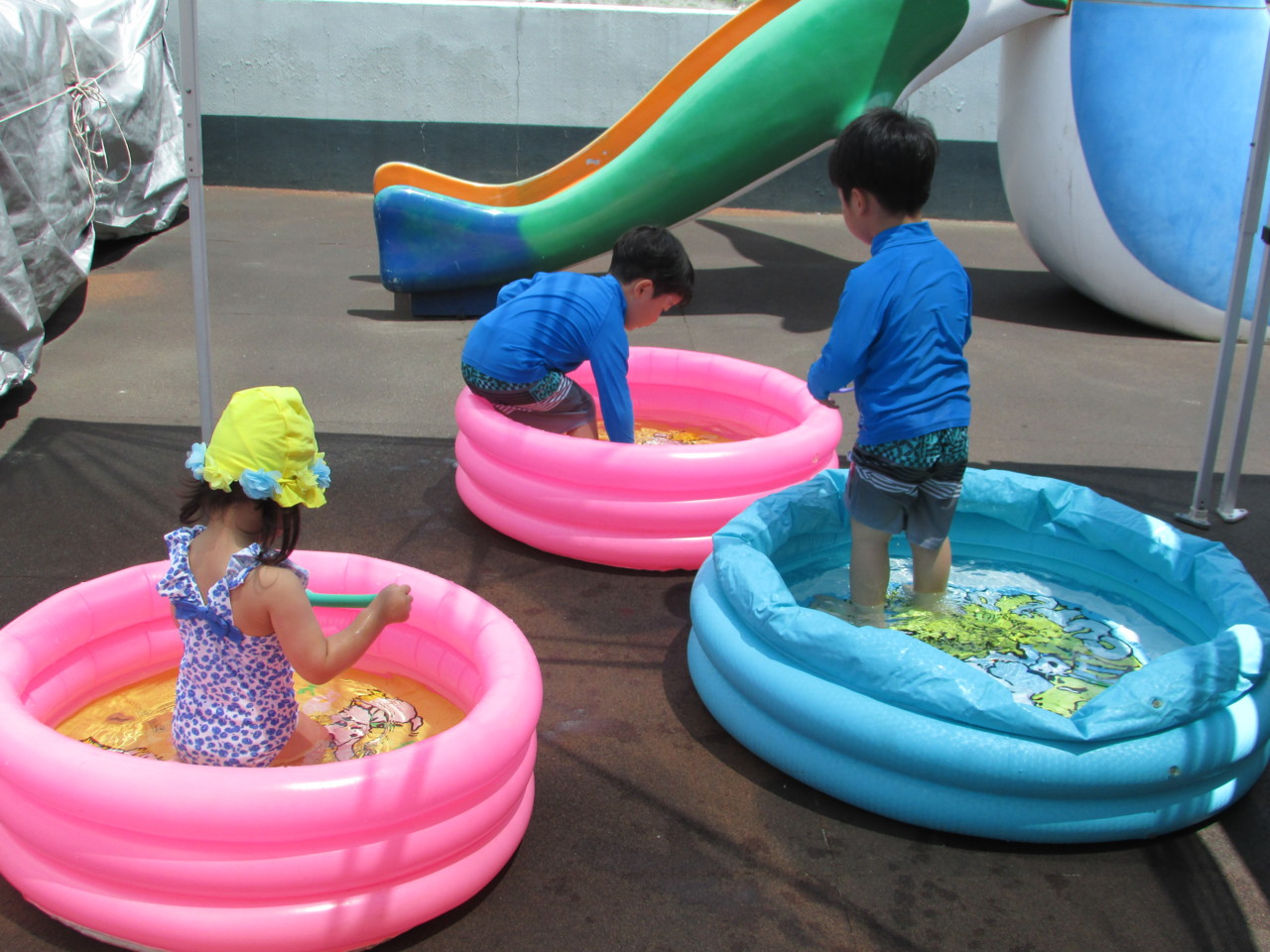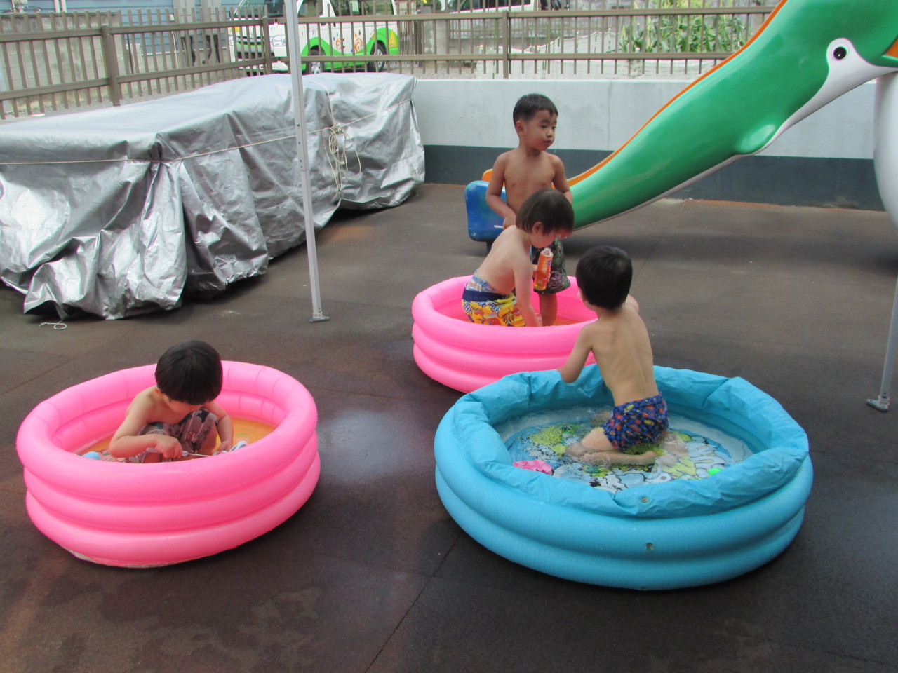 今年は、新型コロナウィルスの流行もあり、少人数で短時間で水遊びを楽しんでいます。