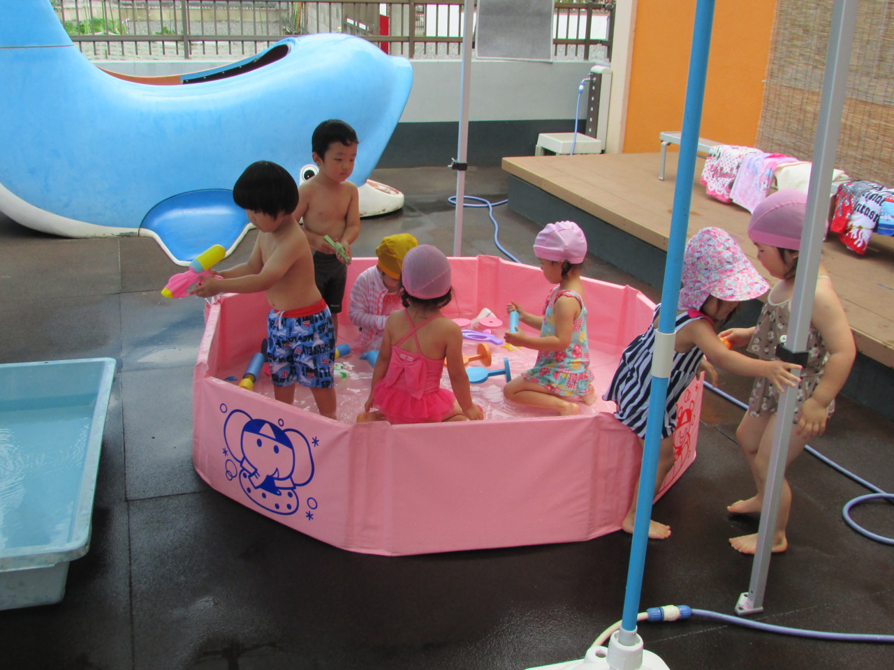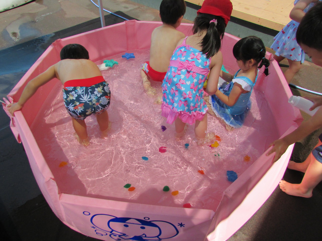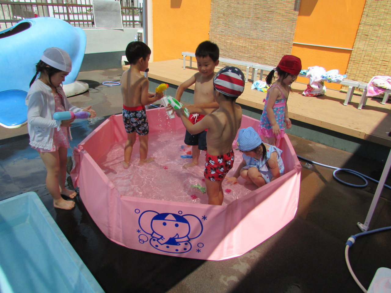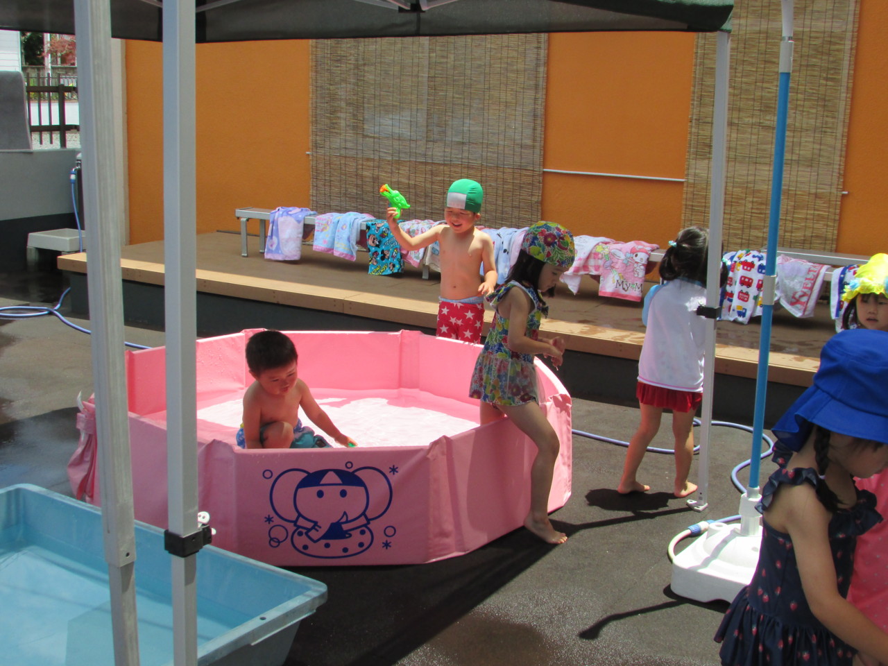 今年は、新型コロナウィルスの流行もあり、少人数で短時間で水遊びを楽しんでいます。