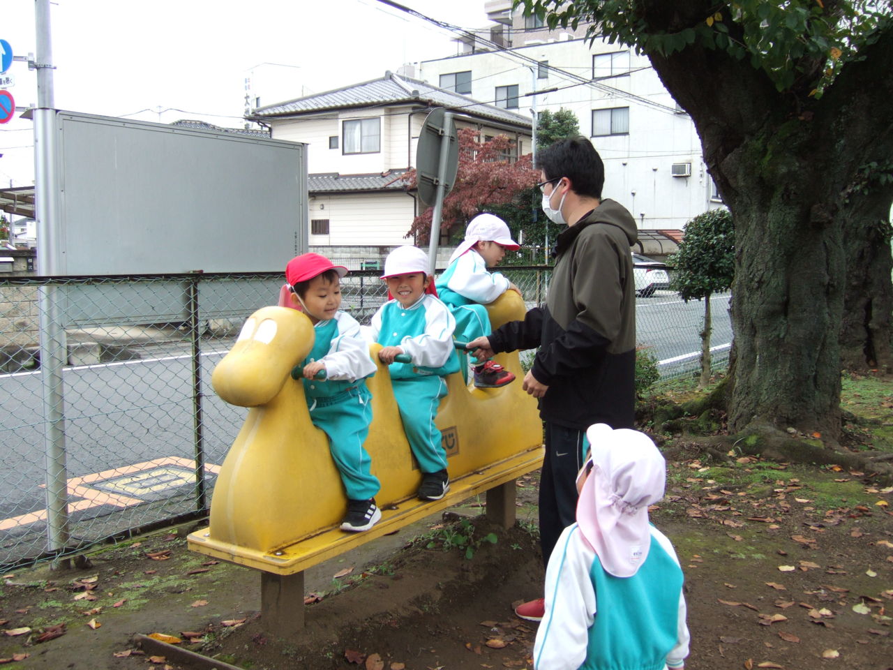 24日(月)一週間前のひまわり組と同じような雨空でしたが、何とか降らない時間にイオン近くの公園に行ってきました。